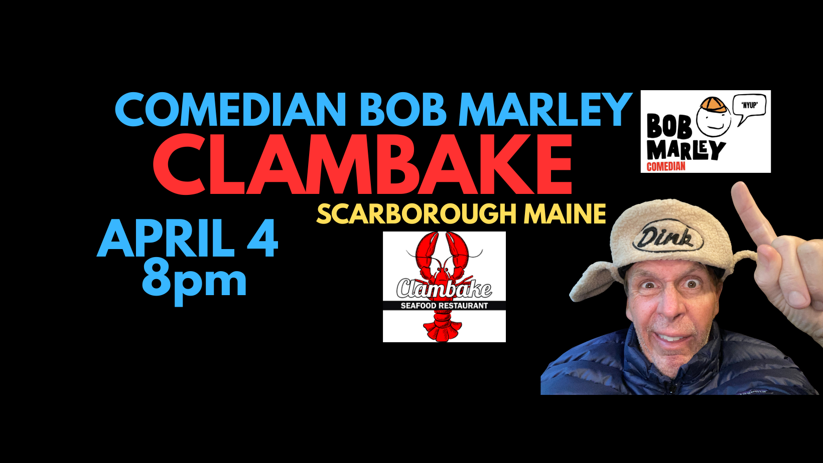 Comedian Bob Marley Clambake Scarborough Maine Saturday April 4 at 8pm!